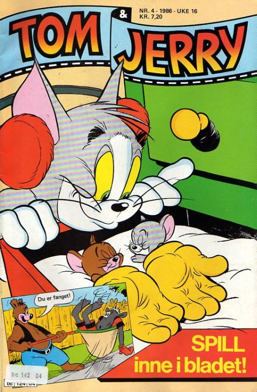 Med "Tom og Jerry-spillwt" stiftet i midten av bladet. |